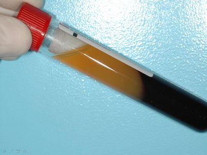 離心程序結(jié)束后,血液會(huì)分為三層
